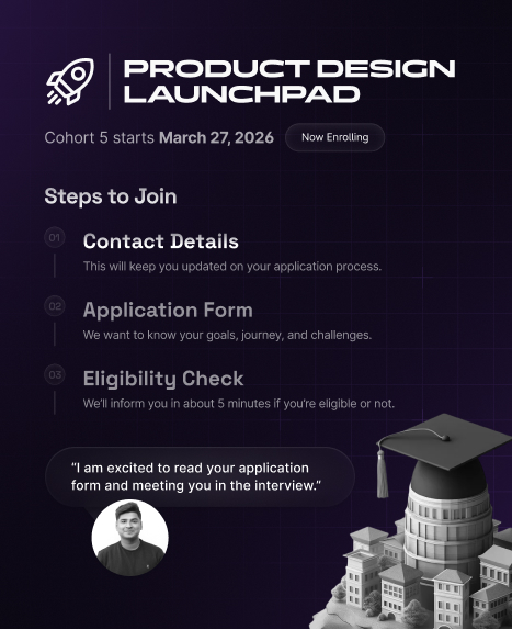 "I had a lot of confusions in my career, I was struggling for a very long time. I am engineer who was trying to make this switch for a long time.Then I came across Rohan after that he told me about Product Design Launchpad. This was not only a product design education but also a mentorship program where I got clarity and confidence that was missing earlier. I am thankful for all the learnings I have got here."